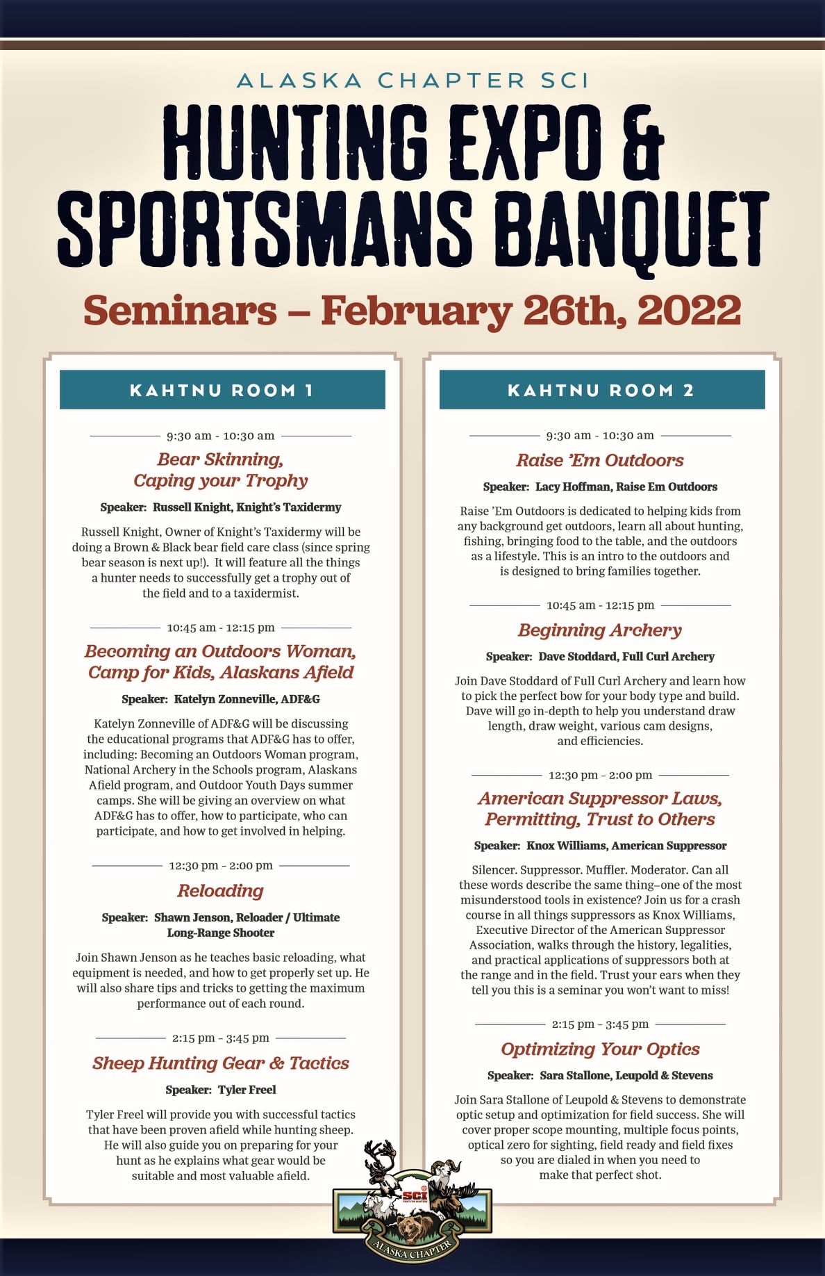 One of 8 fantastic seminars being offered for FREE by the Alaska Chapter SCI.